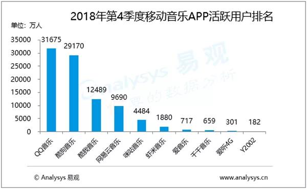 在易观2018年第四季度移动音乐App活跃用户排名监测中,网易云音乐以9690万人位列第四名,远低于酷狗的29170万人和QQ音乐的31675万人。