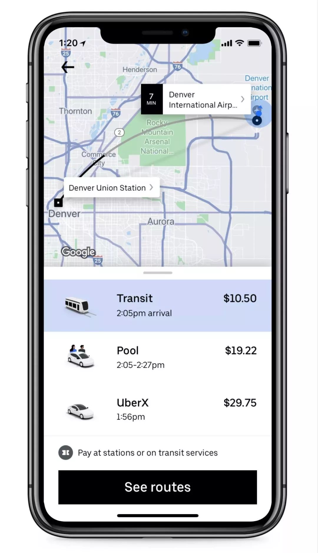 在不同的城市,Uber 和公交系统的合作方式也各有不同。在丹佛, 它与当地公交系统合作,代售车票。用户可以通过 Uber app 购买车票并获取火车和公交的时刻表信息。Uber 并不从卖票的收入中抽成,但可以借此吸引更多的用户,并且还有不少用户会选择乘 Uber 前往公交枢纽,然后再进行中长途的公交通勤。