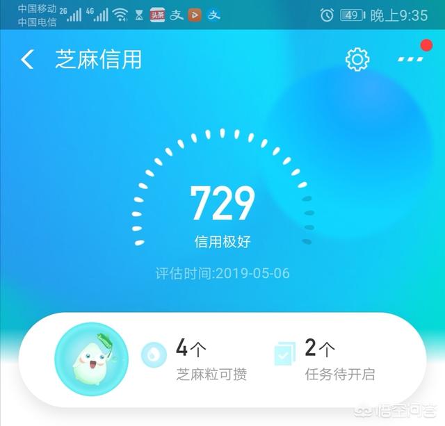 以我本人为例,我的支付宝信用分为729分,我已经在支付宝上的录入了个人的车、房、单位、行驶证、学历以及公积金信息,在支付宝上从未有过逾期情况,在支付宝上绑定的所有信用卡,也从未发生过逾期。