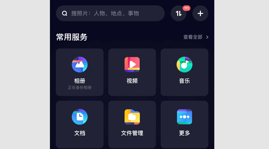 在百度网盘最新的版本中,之前占据主要位置的备份和传输两大基础功能被其他服务抢占了不少空间,反而是笔记和照片搜索等其他服务的位置更加凸显了。