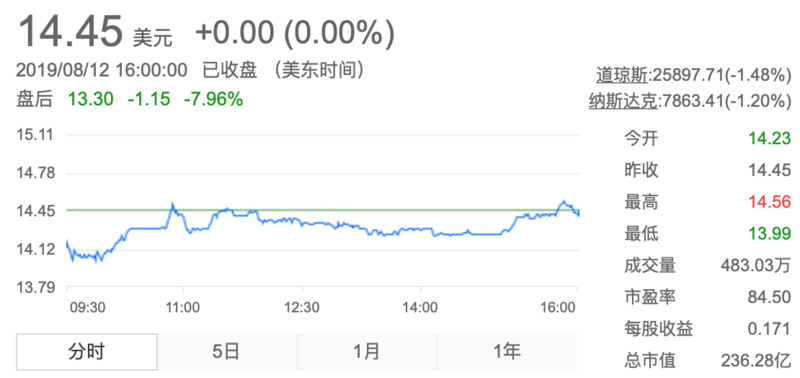 截至发稿,腾讯音乐盘后股价跌幅达7.96%。