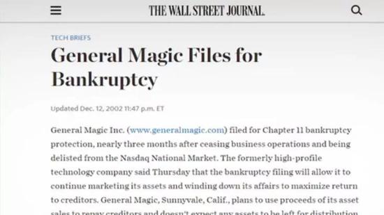 1997年,公司陷入财务危机;在苦苦挣扎了几年后,2002年“通用魔术”正式宣告破产。