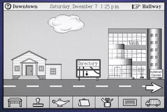别看这些设计丑丑的,其实这种图形界面在90年代的科技圈相当流行:Microsoft Bob也用过类似的界面设计,后来因为实在太丑饱受诟病,渐渐淡出历史舞台。
