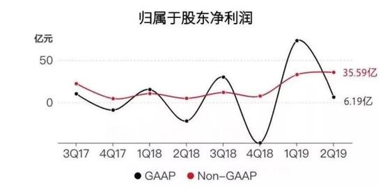 制图 / 燃财经利润表现也丝毫不逊色。美国通用会计准则下(GAAP)与非美国通用会计准则下(Non-GAAP)归属于普通股股东的净利润双双盈利。在非美国通用会计准则下,京东已实现连续14个季度盈利,2019年Q2净利润为36亿元,同比增速644%,为历史新高。