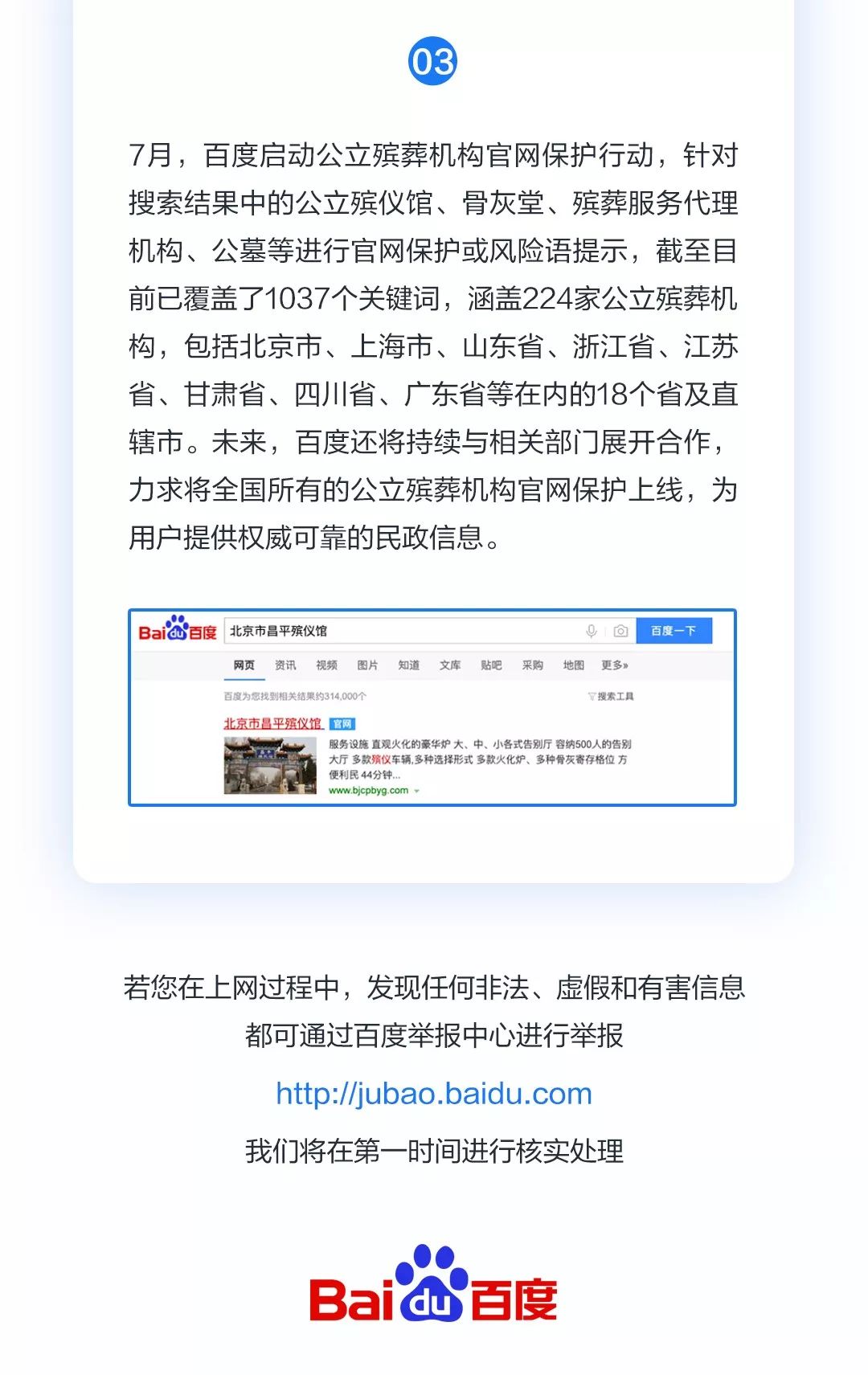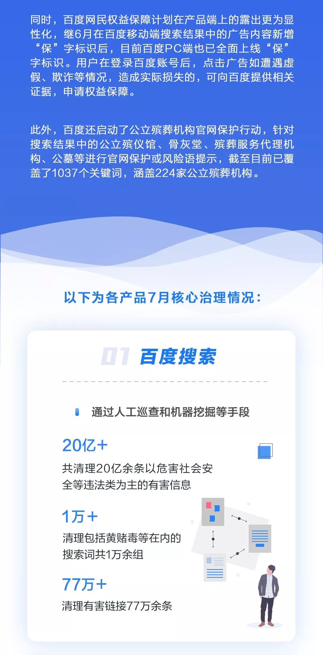今天,百度发布7月信息安全综合治理月报,持续向大家分享百度在处理网络虚假有害信息、保护网民权益方面的相关行动和信息。