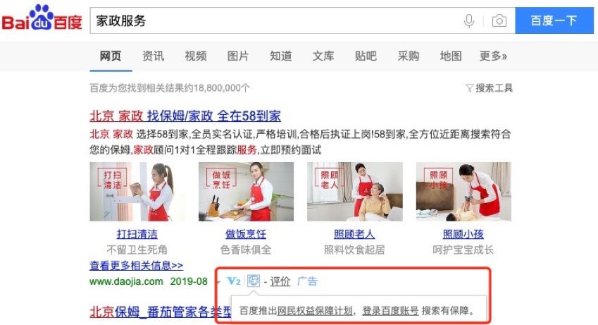 此外,继6月在百度移动端搜索结果中的广告内容新增“保”字标识后,目前百度 PC 端也已全面上线“保”字标识。用户登录百度账号后,点击广告如遭遇虚假、欺诈等情况,造成实际损失的,可向百度提供相关证据,申请权益保障。