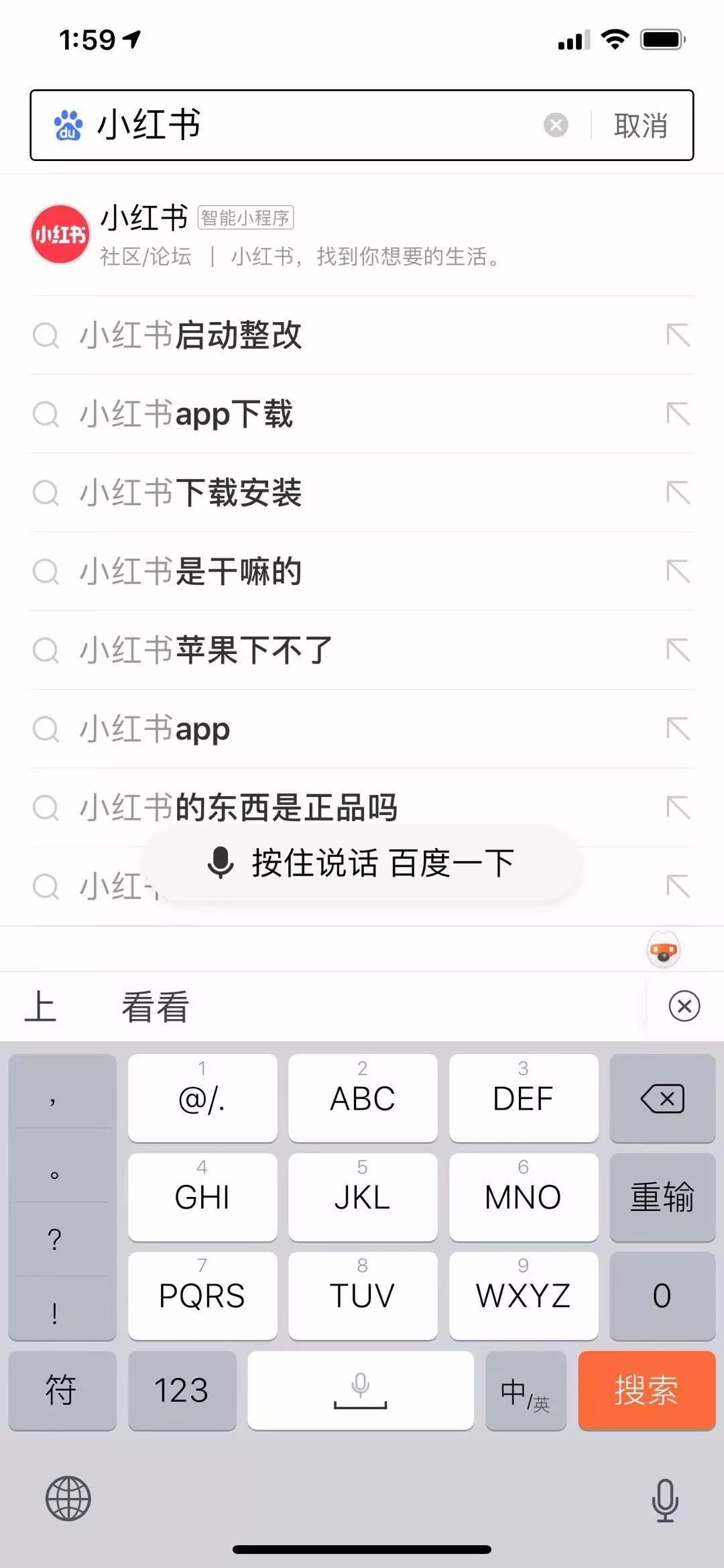 发现微信小程序的最大入口是分享,开发者需要自己去找流量。而百度的战略是关键词搜索优先展示相应小程序——比如搜索唯品会会优先展示唯品会的小程序,比如小红书的内容社区也对应着用户的搜索决策——当目标用户搜索小红书或者去哪儿玩、穿什么时,在联想词和搜索结果往往会匹配到小红书智能小程序。