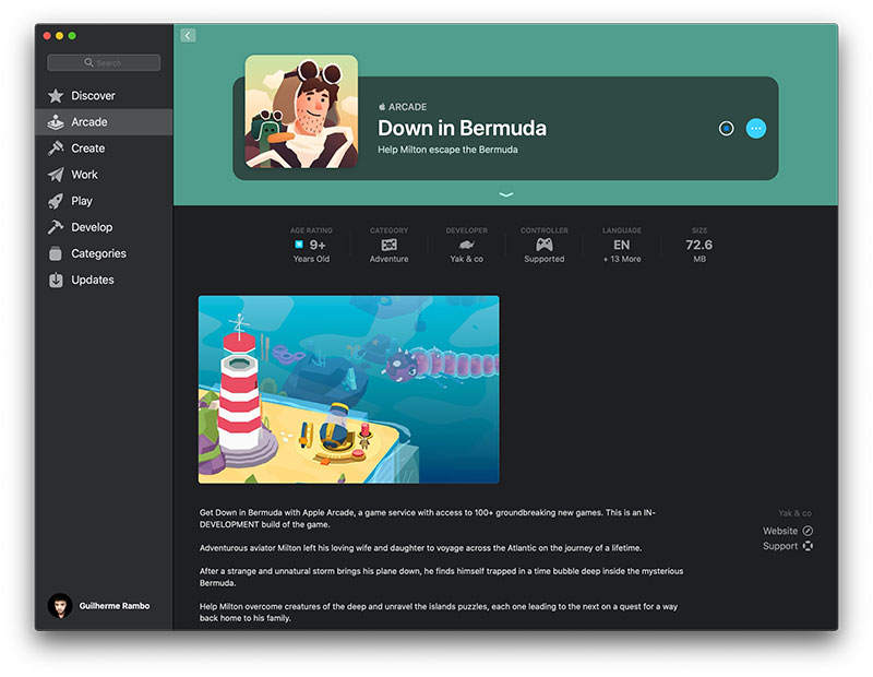 目前 Apple Arcade 上能玩的游戏不多,官方推荐的几款游戏《海龟之路》(Way of the Turtle)、《空降百慕大》(Down in Bermuda)、《炙热熔岩》(Hot Lava)从名字和介绍来看都是属于闯关冒险类游戏,其余的大部分游戏仍显示在开发中,苹果 3 月份发布 Apple Arcade 时承诺将提供超过 100 款独家游戏,包括坂口博信(Hironobu Sakaguchi)、王友健(Ken Wong)、威尔·赖特(Will Wright)等知名开发者的全新作品都将亮相 Apple Arcade。
