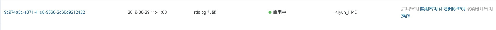 可以创建KEY的别名例如rds_pg_key1,千万不要把加密RDS PG的KEY删掉,否则会导致RDS PG的数据无法解密,无法使用。