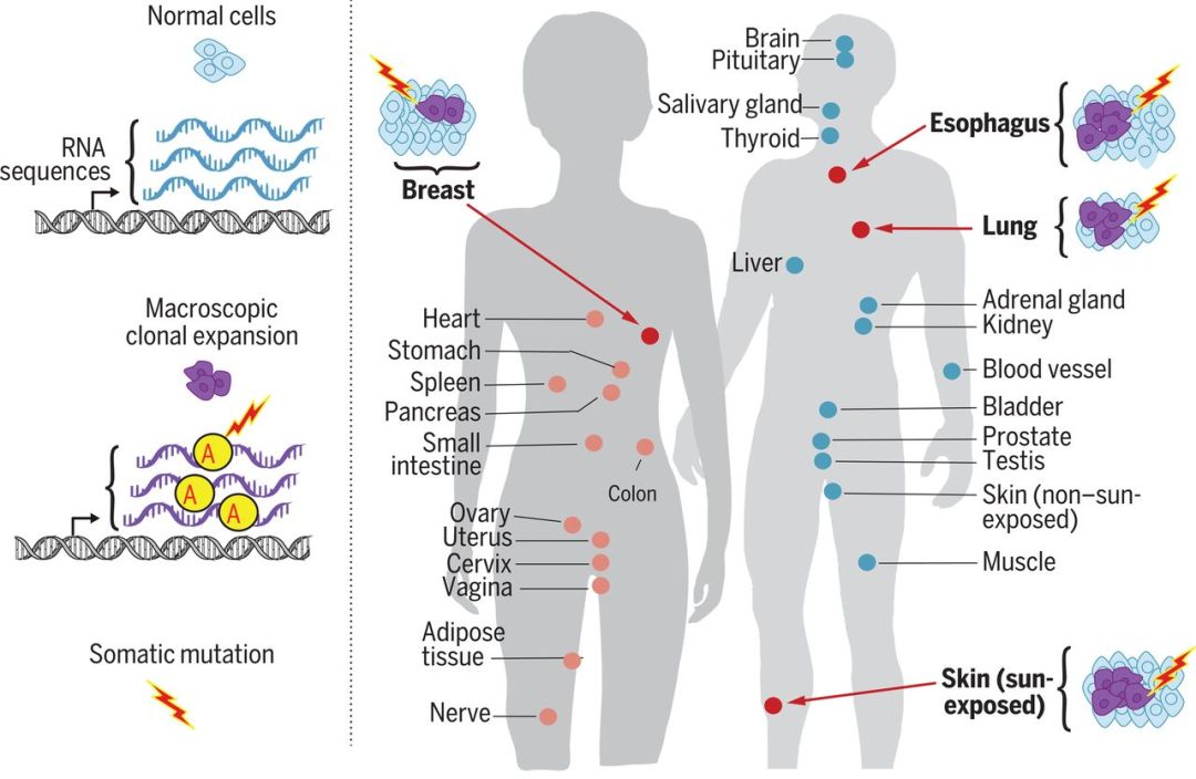 图丨 体细胞突变广泛存在于健康组织中 (来源:Science)