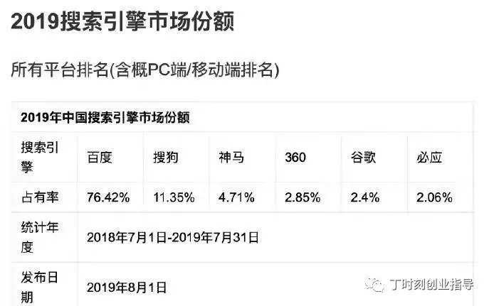 数据显示,截至2019年7月底,在中国搜索引擎市场中,百度依然是绝对的一家独大,牢牢占据七成市场。