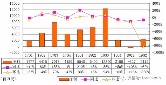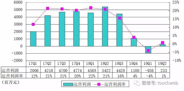 不按照美国通用会计准则,第二季度运营利润为19.55亿元(约合2.85亿美元),比上年同期下滑70%;不按照美国通用会计准则,运营利润率为7%,低于上年同期的25%。
