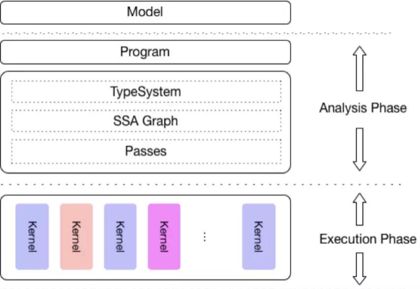 最底层是执行层,也就是一个 Kernel 序列构成的 Runtime Program 。执行层的框架调度框架极低,只涉及到 Kernel 的执行,且可以单独部署,以支持极致的轻量级部署。