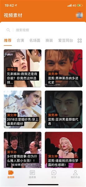 ZAO的视频素材和表情素材,律师认为这当中ZAO和用户均存在侵权风险。APP截图