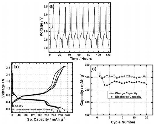 大体应该能够看出来高下了吧,无论放电电压平台(稳定在2V左右),循环次数(7500),电极材料稳定性方面(高倍率下几乎没有衰减,一般测试循环的稳定),相对廉价的材料(C的各种变种),几乎都是质的提升。同时,针对说到的能量密度的问题,我想解释一下,这里的铝离子电池实际上还是一种半电池,并不是全电池这点,讨论能量密度的意义感觉不太大。毕竟,半电池的电压窗口测试不会太大,讨论这个还是要等到全电池做出来比较有意义,所以从科学研究的意义上来讲,这篇文章的厉害程度是跃进式的。其次,文章中找到了这样一种很牛的材料,应该也是做了一些努力地不是乱试,个人觉得是在结构上进行分析之后觉得可行,该材料的晶须的开放框架结构形成了一种所谓的“3D structure”,使AlCl4-能够很好很快的在其中穿梭。整篇文章从锂电池研究的角度上来说也是亮点纷呈啊,首先,软包吧基本是柔性的,然后高倍率放电,其内部结构是一种3D结构,各方面的性能放在锂电池中都是可以冲击Nature子刊的文章,更何况是全新的AIB,当然如果能找到和这种石墨泡沫相符合的正极材料,我觉得Nature左右也不为过啊,当然,找到一种合适的正极材料也是锂电池正极材料也是亟待解决的问题。