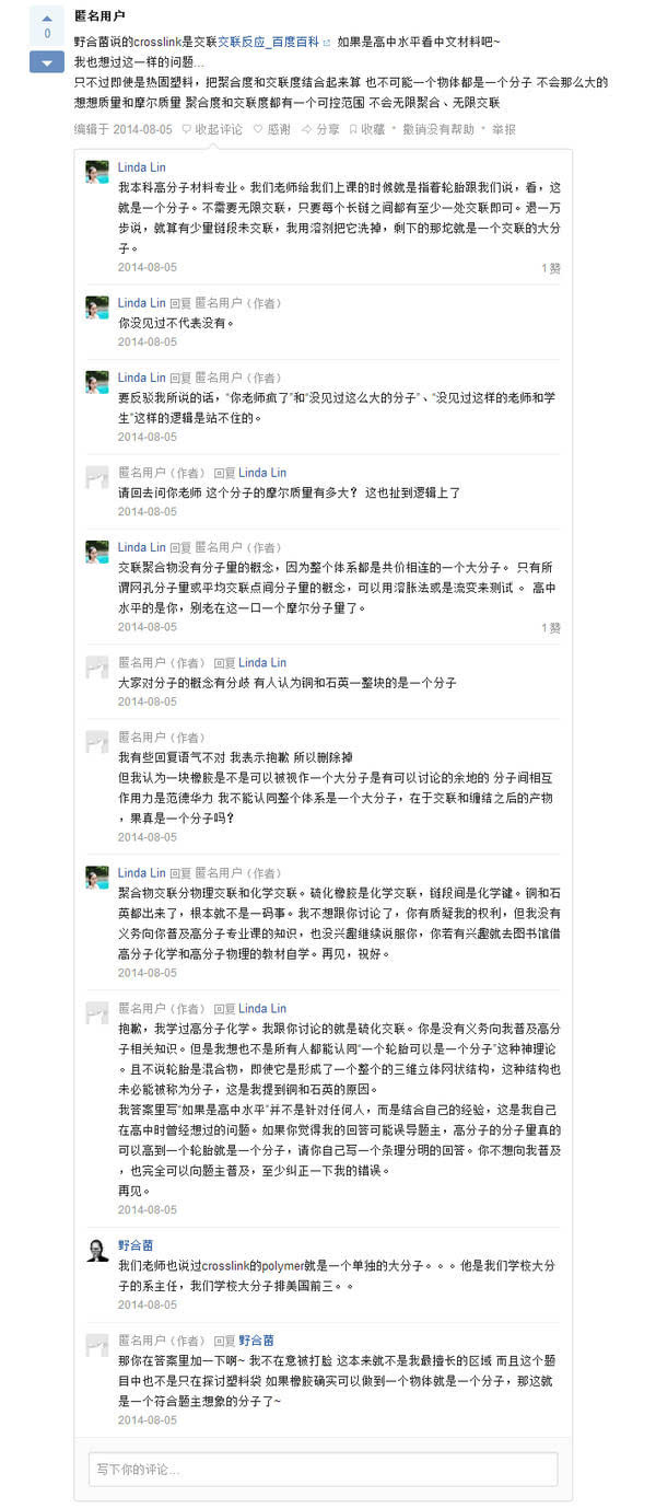 原来这位匿名用户因为我的回复到百度贴吧上提问了。我很欣慰的是化学吧里还是有不少的确懂一些专业知识、并且懂得客观分析的人的,虽然同时也有些表示“吓尿了”、“震惊了”或是傲娇地嘲讽我说的轮胎分子叫我写出轮胎结构式的高中生(对于这些人我真的只能说:你们读书少但我不会骗你们的)。