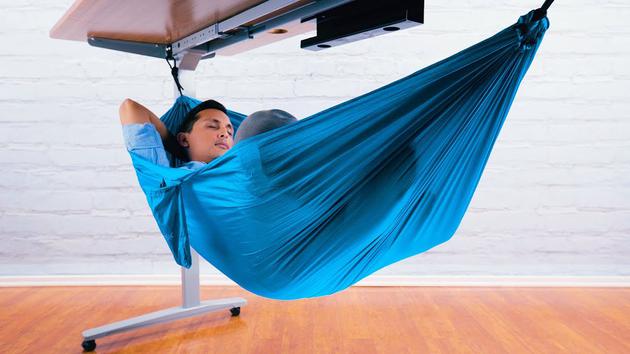 德克萨斯一家公司近日推出了一款名为Under Desk Hammock的创意产品,它可以安装在部分办公桌之下,让你在工作间隙给自己一个放松的机会。