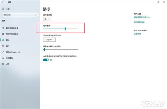 鼠标面板增加了一项“光标速度调整”,通过它可以快速调整鼠标移动时的灵敏程度。原本这项功能是隐藏在鼠标选项的Win32设置面板下,呼唤N年后终于“得见天日”。