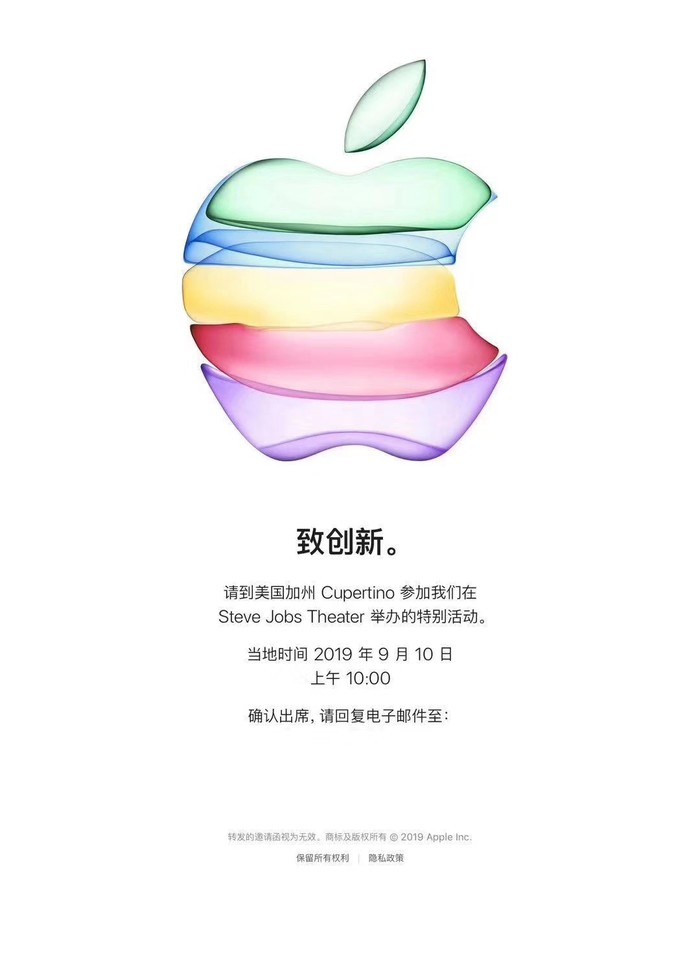 “苹果正式向各大媒体发送了邀请函,北京时间9月11日凌晨1点,即将在美国加州Steve Jobs Theater举行2019年秋季发布会。