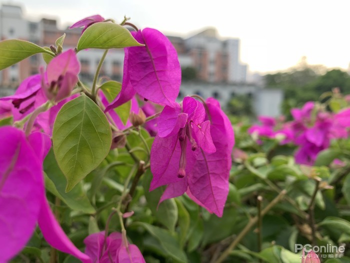 在日光照片上,iPhone XR维持了iPhone XS系列的高素质,成熟的1200万像素摄像头,分辨率十分高,建筑的线条清晰可见;在照片颜色上,维持了iPhone手机长久以来的性冷淡调色:饱和度不会特别高,但是胜在颜色自然,让人整体的感觉十分舒畅。超大的F/1.8光圈,在近摄的情况下,背景十分柔和,叶片、花的纹路十分清晰。
