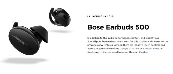 点开Bose的官网,你会发现Bose对其产品宣传页进行了更新,在Bose NC700头戴式无线降噪耳机的下方加入了Bose Earbuds 500和Bose Earbuds 700两款新品的介绍。根据官方说法,Earbuds 500作为Soundsport Free的升级版,增加了一些新功能,其中就包括触摸控制,同时支持Goolgle Assistant和Amazon Alexa语音助手,但没有提到其具备降噪功能。