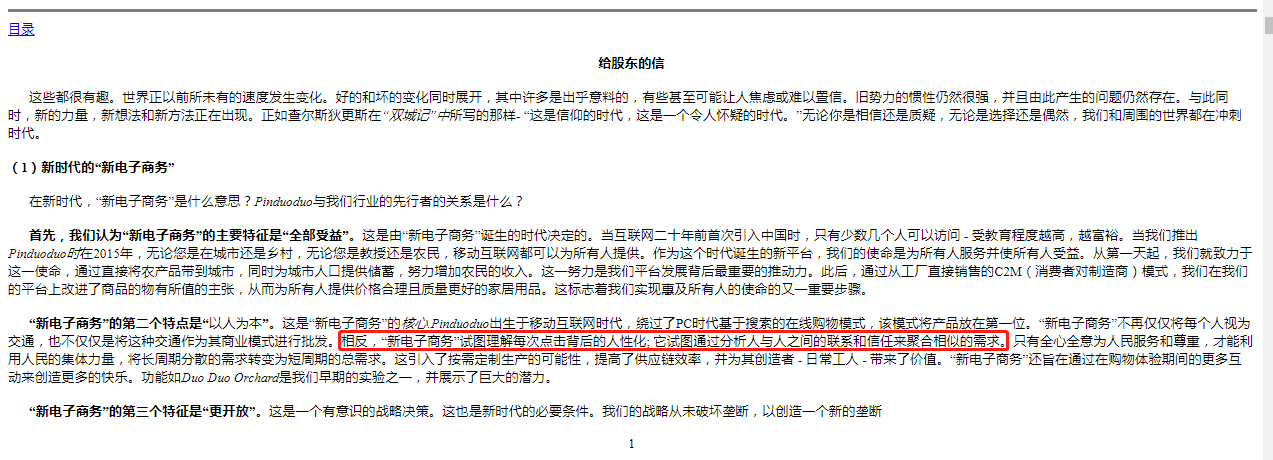 呵呵,然后,笔者又把刚从拼多多财报中读到的关于拼多多对“新的电子商务”的解释:相反,“新电子商务”试图理解每次点击背后的人性化,它试图通过分析人与人之间的联系和信任来聚合相似的需求。