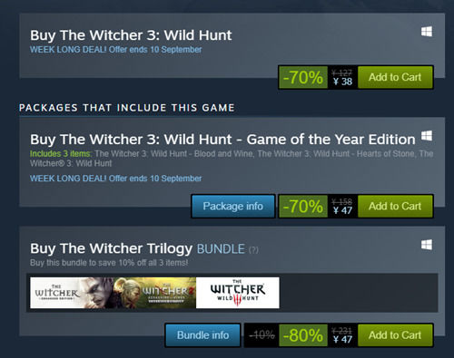 《巫师3:狂猎》及其年度版结束了“限时原价”,又开启了打折,游戏本体售价38元,年度版售价47元。如果你仍然没有入手的话不妨去Steam看看,特惠截止到9月10日。