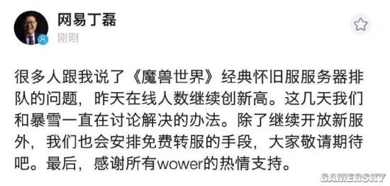 感谢大家对《魔兽世界》经典怀旧服的理解和支持。
