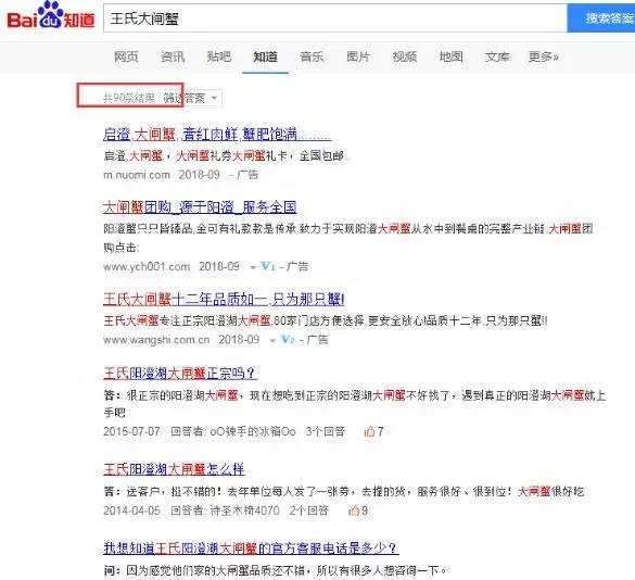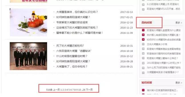同时,王氏大闸蟹进行站内围绕关键词的内容优化,光是百科问答就有516条。王氏