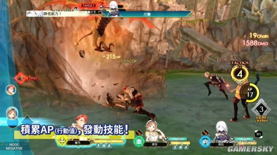 本作的战斗系统采用战况会随时变化的「即时策略战斗」,操作角色以外的人物也会同时行动。透过消费AP(行动值),玩家可以无视技能、必杀技与行动顺序,以「加速行动」优先使用技能或道具,AP值全队共享,因此也需要有策略地使用。当AP累积到最大值后「战术等级」就会提升,战斗自由度也会更高。