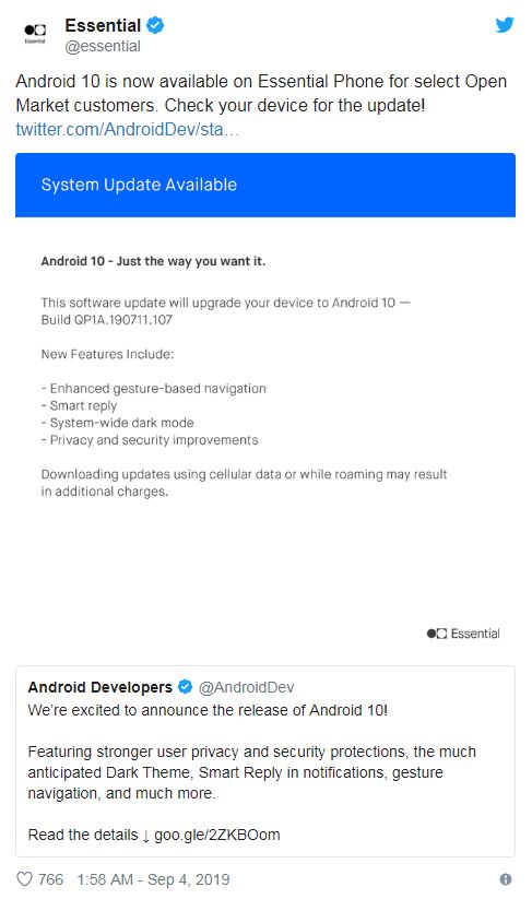刚刚范围报道了一件令人惊喜的事情 —— 已经停产的 Essential Phone,竟然也处于首批迎来 Android 10 更新的机型列表中。 此前,我们以为 HMD Global 为诺基亚智能机产品线制定的 Android 10 升级计划已经够惊喜了。没想到的是,Essential Phone 竟然也获得了同等的待遇,在 Google Pixel 推送数小时后,也迅速跟进并向用户推送了 Android 10 更新。
