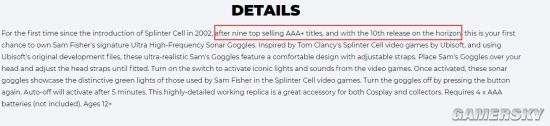 不过最近,有网友发现在GameStop商店开卖的一款《细胞分裂》护目镜周边产品,居然出现了新作的讯息。难道我们熟悉的电商“卖队友”传统技艺又重现了?