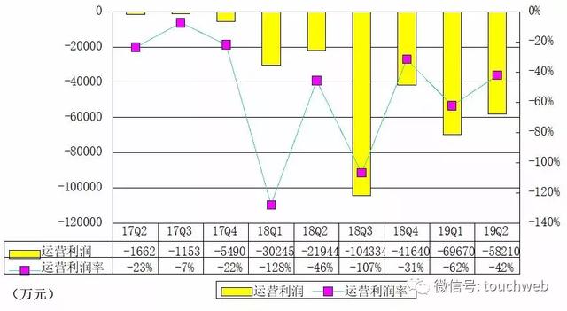 趣头条第二季度的运营亏损为5.821亿元(8480万美元),2018年同期为2.194亿元。2019年第二季度运营亏损率为42.0%,2018年同期为45.6%。