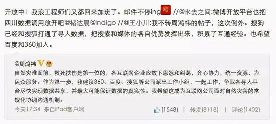 “我不转周鸿祎的帖子,这次例外。……搜狗已经和搜狐打通了寻人数据……也希望百度和360加入”。