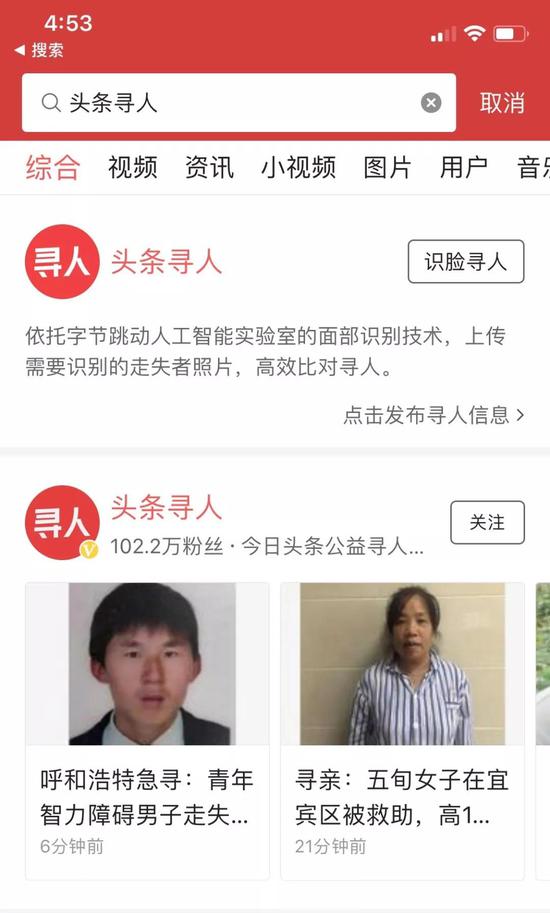 另一个尤其值得拿出来单独讲的,是头条的“头条寻人”。
