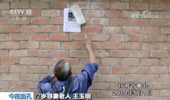 前几个月央视就报道过一则案例,72岁的老人王玉明为了寻找走失的妻子,每天一大早就骑上单车,背上二十管胶水、几百张寻人启事、一床被褥和几个馍馍,从早贴到晚。