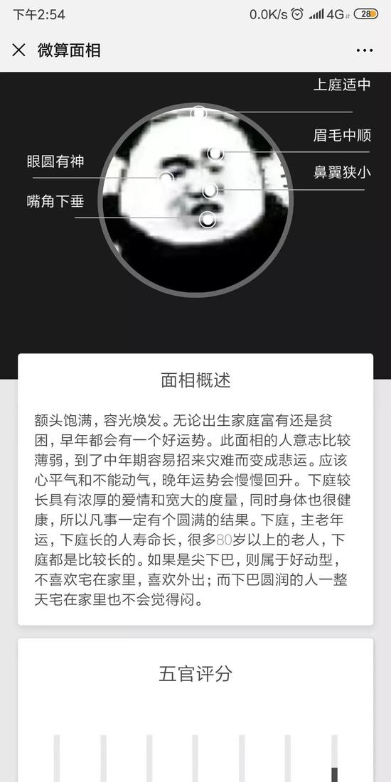 可现实是,我很少发脾气,而且我18那年过得好好的。然后我又搜了一下其他的,发现结果都差不多,有人就说过,网站上的算命基本都是程序在算。本着不一棒子打死的原则,我又在微信上找了个大师,让他给我看看面相。然后,他丢给我一个公众号,说这是他们公司做的,有专人在后台看面相,让我先把照片传上去,他的同事会帮我看。