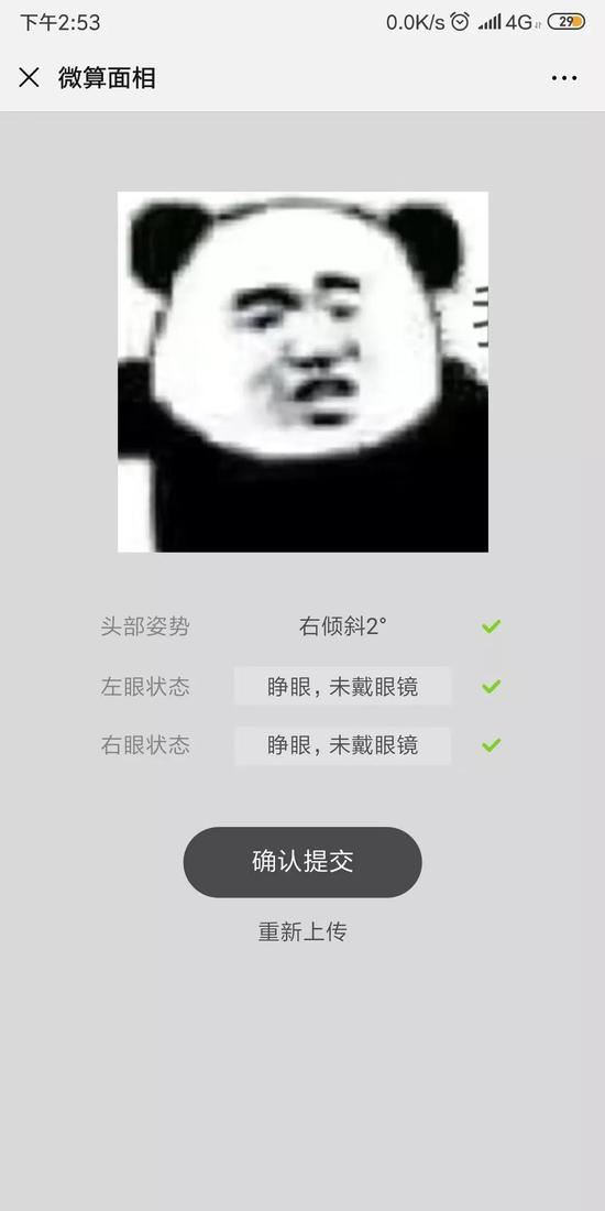 但是感觉事情没那么简单,我也有点担心泄露隐私,就没有上传的自己的照片,而是上传了一张熊猫头的表情包。