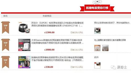 黑奇士在京东上搜索,没找到可以降血糖的格力电饭煲,倒是找到了别的品牌在做“脱糖电饭煲”,似乎就是董明珠所说的那种产品。