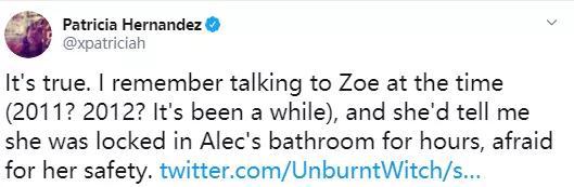 但需要说明是,这些标题中的“指控性侵”这一说法并不切实——佐伊在文中的确提到性侵,但实际上指的是她此前的经历,并非针对艾历克——不过在大部分人意识到这一点时,“性侵”之名已经早已传开了。