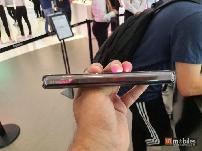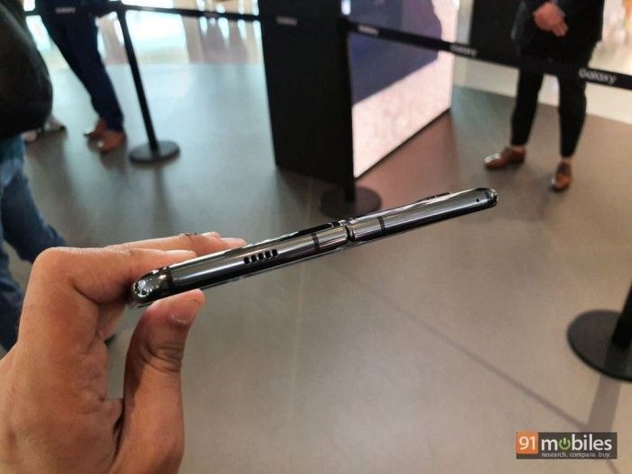 首先,Infinity Flex 柔性折叠屏的顶部保护层,已经延伸到了边框之外,使之不容易被人误以为是普通原厂贴膜撕掉而到知识设备的损坏。其次,铰链顶部和底部的防护帽,也得到了了相应的加强。因此 Galaxy Fold 能够在保证折叠体验的同时,更好地保护设备免受外部颗粒侵入造成的损害。此外,Infinity Flex 显示屏下方还有其它金属护板,能够加强对显示屏的保护。Galaxy Fold 铰链和主体之间的空隙,也得到了进一步的缩小。