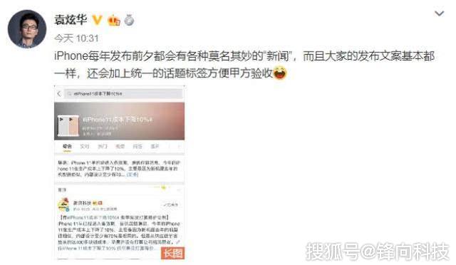 就在近日有人在国内发现一个关于iPhone11(暂时先这么叫)的非常奇怪的消息。就像@袁炫华 所称的一样:每年新iPhone发布前夕都会有各种莫名其妙的“新闻”,而且发布这个消息的媒体方案都基本相同。今年的消息是“iPhone11的成本或下降10%,但苹果并不打算把这个让利给消息者”。如果你好奇可以去看看,很多权威的媒体都出动了。而它们发布的消息有的内容都是一模一样的。