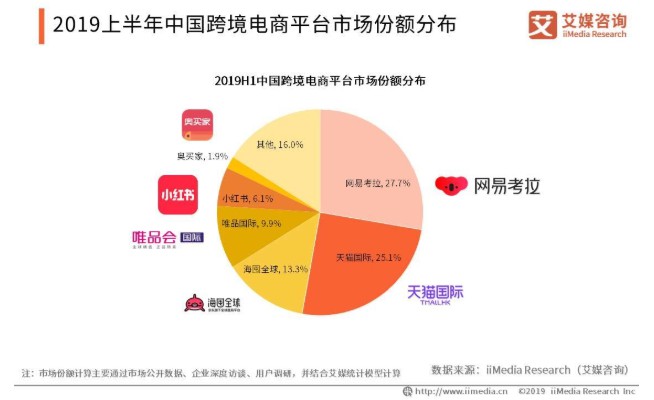 根据艾媒咨询发布的《2019上半年中国跨境电商市场研究报告》,网易考拉以27.7%的市场份额排名首位,天猫国际以25.1%的市场份额排在第二,网易考拉在跨境电商市场中还是有着一定的影响力。但实际上,网易考拉的增速正逐渐递减。