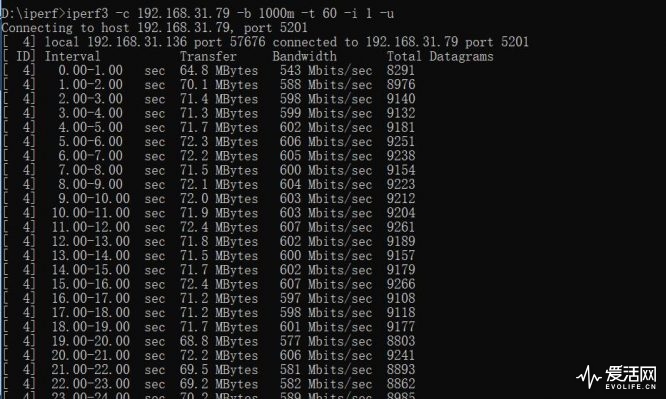 最后是最专业的iperf3上场,我在一台通过千兆有线网连接小米路由器AC2100的台式机上以服务器模式运行,然后在Redmi K20 Pro上用iperf3网络工具进行TCP/UDP带宽测试,结果测算实际吞吐带宽大约在280Mbps/360Mbps左右。微星笔记本的iperf3带宽测试结果比手机要高,大概在350Mbps/600Mbps左右,笔记本侧的数据和上文的文件传输测试吻合。