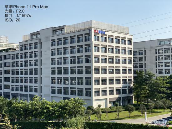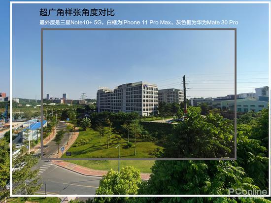 华为Mate30 Pro Galaxy Note10 5G iPhone 11 Pro Max由于这个差异也比较明显,所以我们查看了相关的EXIF信息,发现原来华为Mate 30 Pro的广角度数只有90度(应该经过畸变修正后的角度),而三星Galaxy Note10+ 5G的广角度数为108.3度,苹果iPhone 11 Pro Max为104.3度,这也说明为何会出现以上对比图那样的区别。 三台手机的广角样张表现如何?