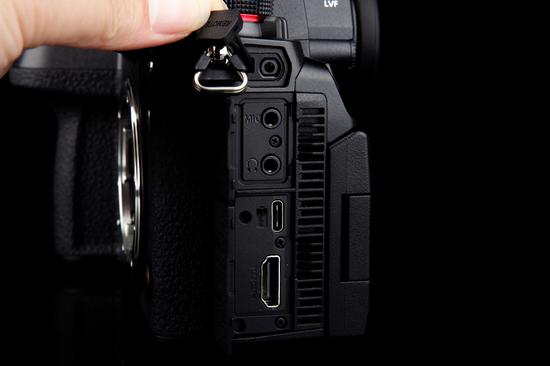机身两则主要是些输出端口仓以及S1H的双SD存储卡槽。另外从右侧也可以看到S1H独有的散热装置的出风口。