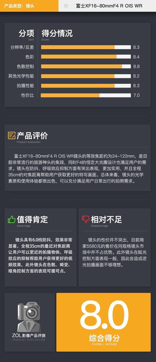 富士XF16-80mmF4 R OIS WR的核心参数: