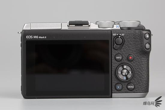 佳能EOS M6 Mark II采用了一块3.0英寸、约104万像素的显示屏,支持多指触控,能像我们使用手机一样进行单指滑动切换图片、双指缩放、轻触对焦、触摸快门等功能,这块显示屏还支持翻折,可向上翻折180度,方便自拍,也可向下翻折45度。按键区域跟前代产品基本类似,但佳能EOS M6 Mark II额外增加了对焦模式切换和AF启动按钮,能够快速在自动对焦和手动对焦切换,激活自动对焦功能。且AF启动按钮也可根据需要来自定义其功能。