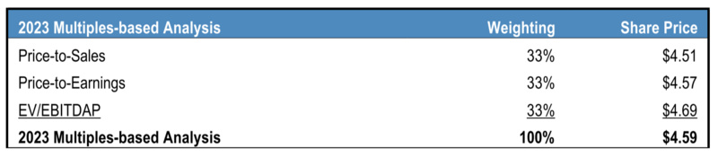 在J.P.Morgan的估值中,采用了综合法,结合2023年P/S(市销率)、P/E(市盈率)和EV/EBITDA(企业价值倍数)的预测,各给予三分之一的权重,预测2023年目标价为4.59美元。