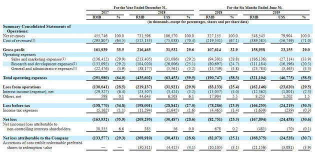 招股书显示,在截至2019年6月30日的上半年,有道营收达到人民币5.485亿元(约合7990万美元),较去年同期的人民币3.272亿元增长67.7%;有道2018年上半年和2019年上半年的净亏损分别为人民币8280万元和人民币1.679亿元(约合2450万美元)。